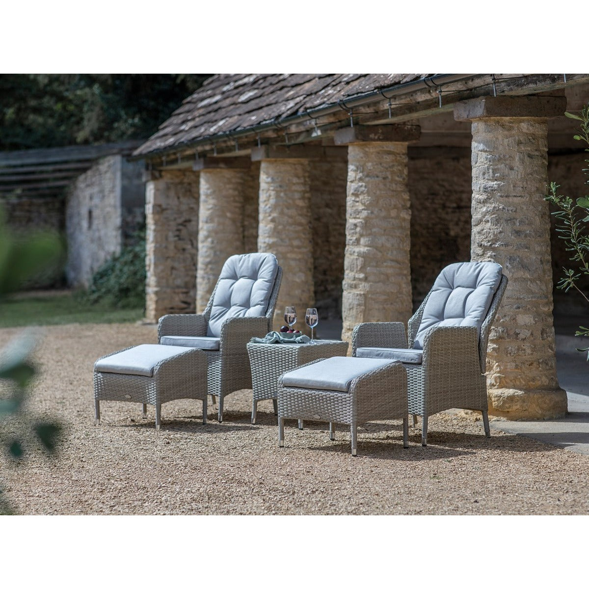 Nutmeg Rattan Recliner Set with 2 Footstools & Tree-Free Top Side Tablegarden