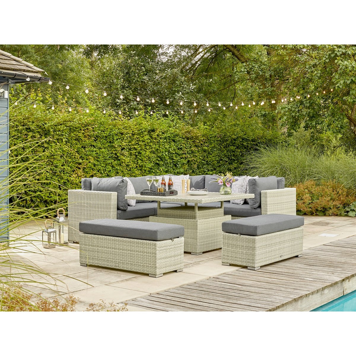 Cloud Rattan Corner Sofa with Square Dual Height Table & 2 Benchesgarden